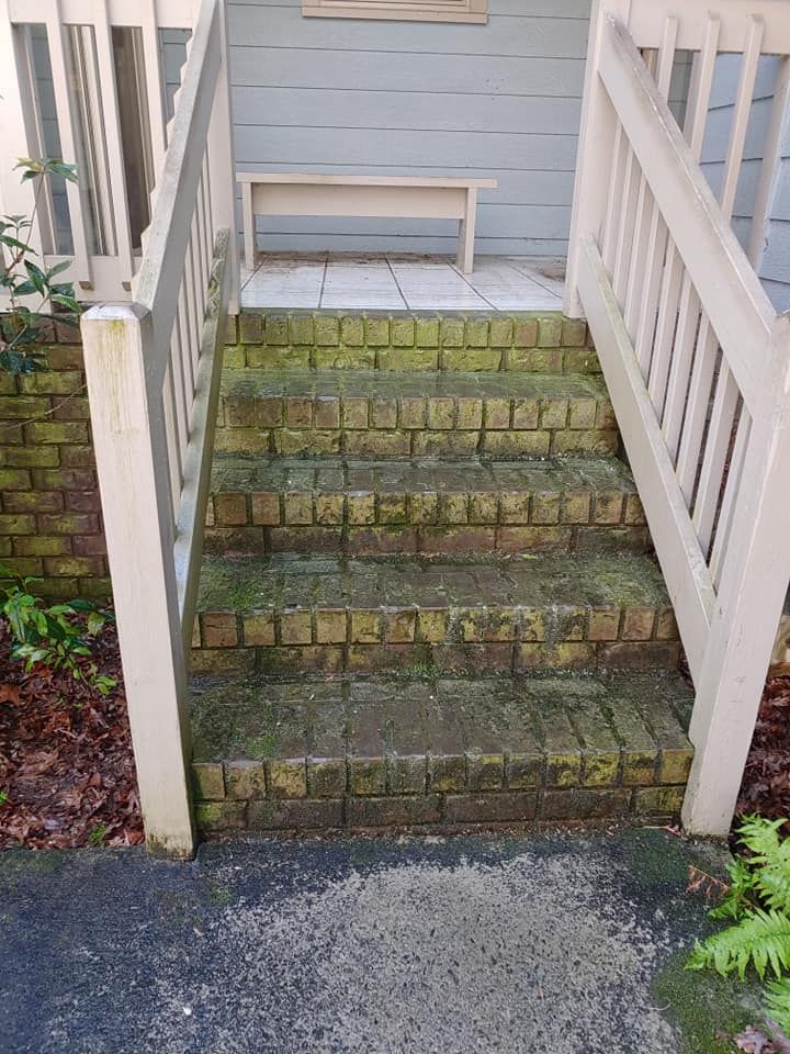 - Pressure Washing uses high-pressure water to blast away dirt, moss, and grime. It is best for durable surfaces like brick, concrete, stone, and some types of robust siding such as vineer.